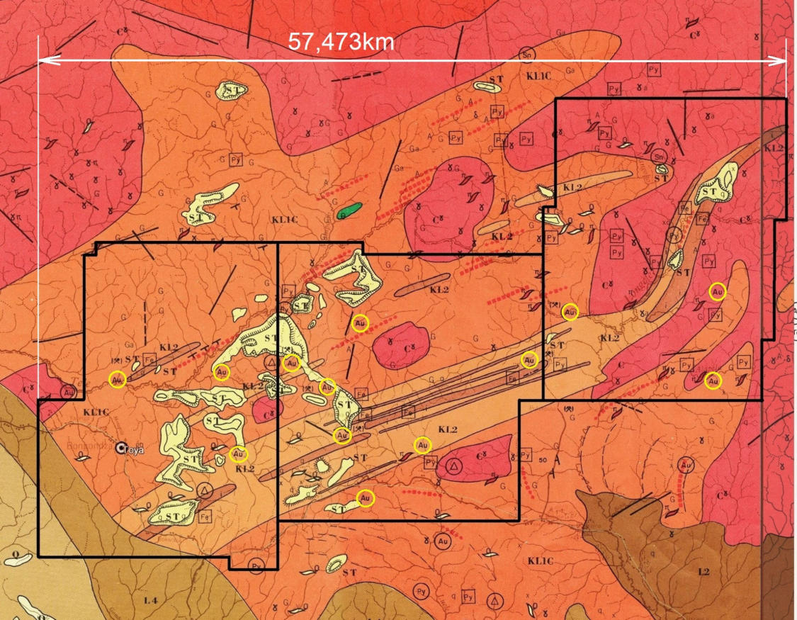 each of them consists of 471 mining squares (403,7 km2), totaling 1413 mining squares (or 1211km2 )
