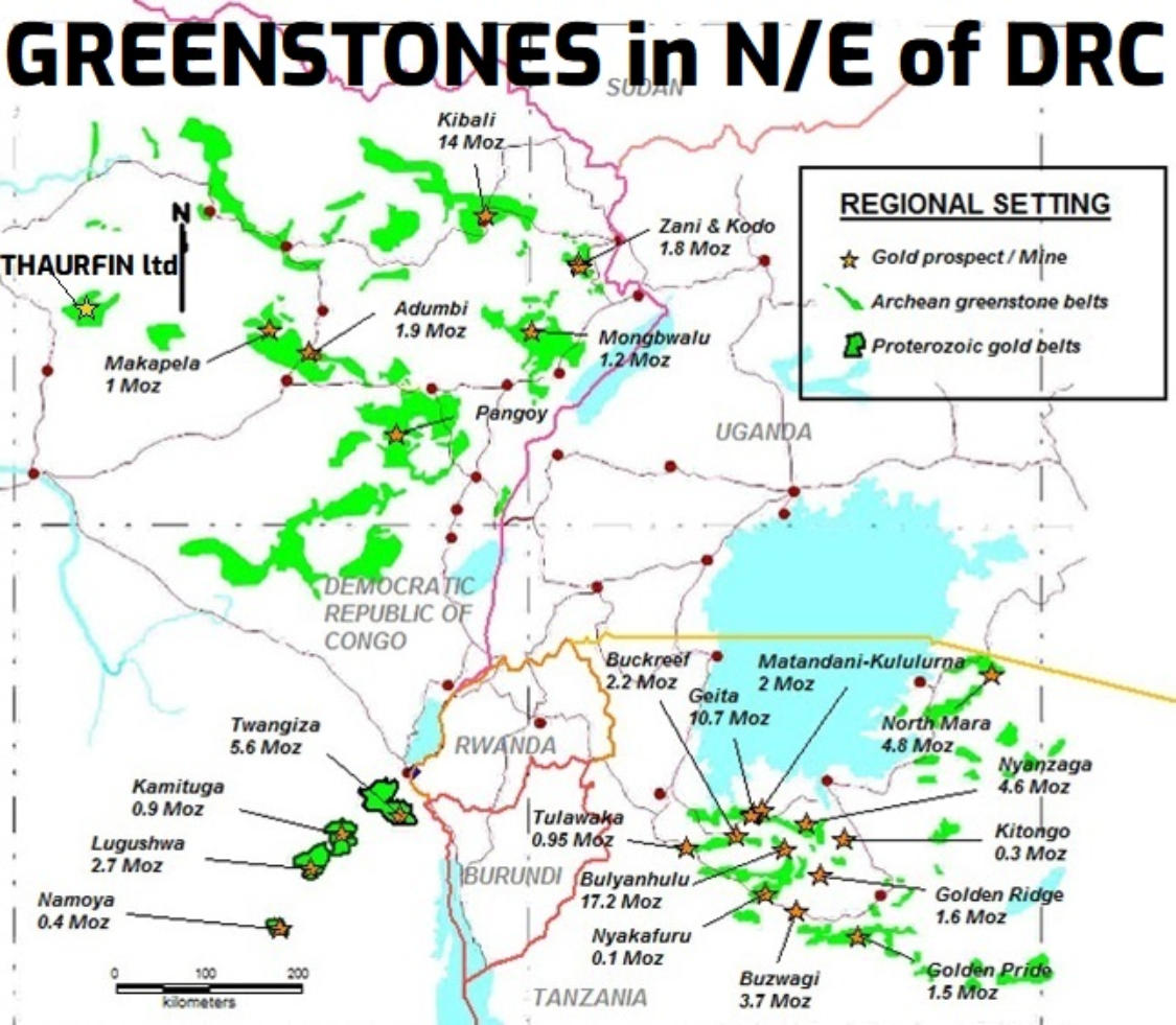 The “Tele Belt”, covered by the M'Bomo permits, belongs to a NNW rosary of similar “greenstone”