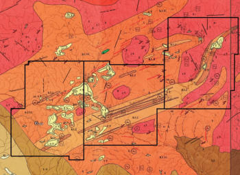 Not drawn on this map is a ENE shear zone following the